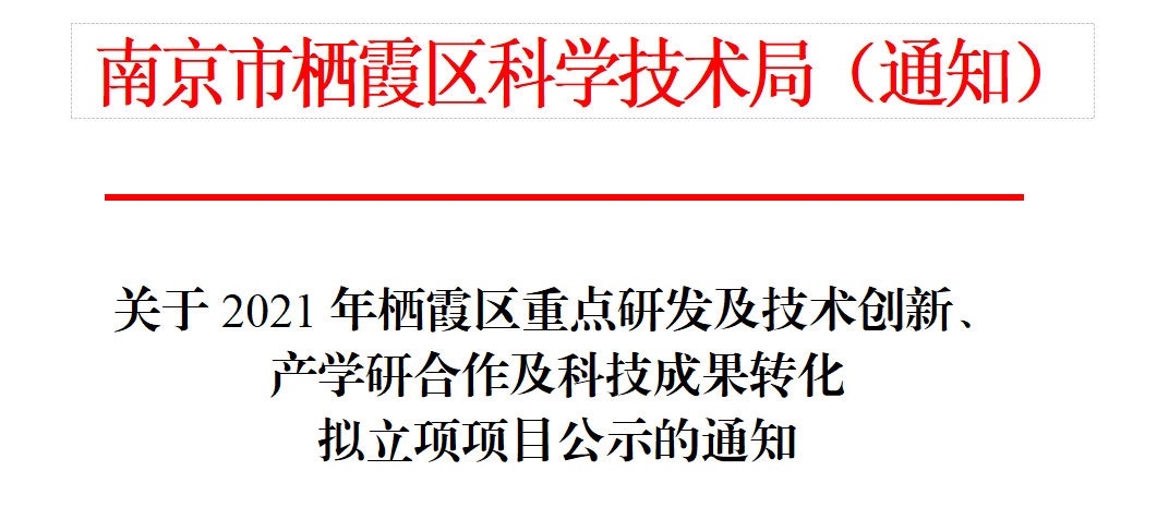 我司成功申報(bào)2021年棲霞區(qū)科技成果轉(zhuǎn)化項(xiàng)目