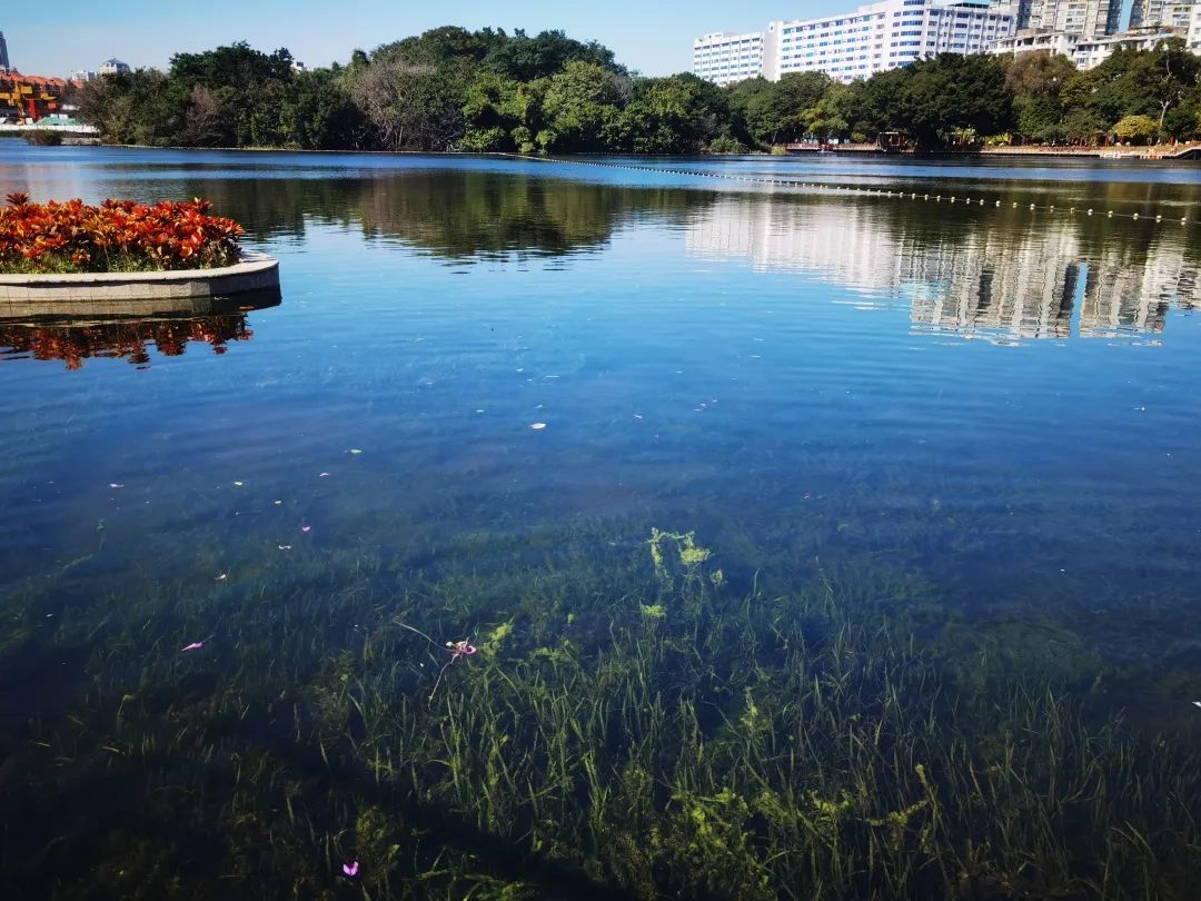 流花湖治理后主要水質(zhì)指標總磷、氨氮、COD、BOD5均已達到國家地表水Ⅳ類標準,透明度清澈見底,水下森林清晰呈現(xiàn),形成了良性的生態(tài)自我修復系統(tǒng),完美的呈現(xiàn)“水清、景美、人和”流花湖生態(tài)景觀。