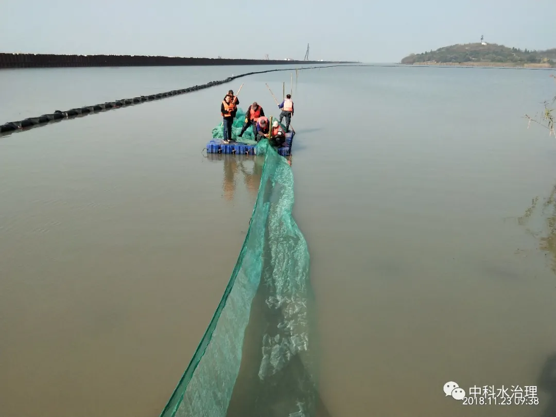2018年7月,南京中科水治理股份有限公司再次中標太湖水域人工種植水生植物試驗項目。為更好地推動“梅梁湖項目”,貫徹和落實上級領(lǐng)導(dǎo)對本項目的指示,中科水治理以太湖沿岸線為基礎(chǔ),以圍隔為隔水材料,將太湖水域隔離出封閉水域6萬㎡,并以仿生消浪、漁籪、生態(tài)網(wǎng)膜工程為輔助措施,進行太湖水域人工種植水生植物的試驗項目。